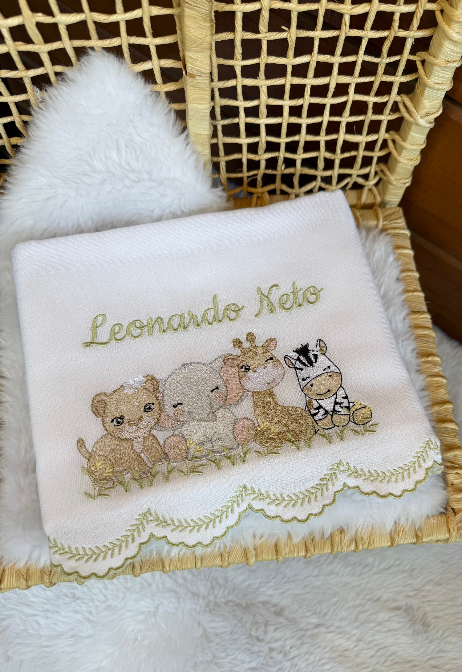 Cada detalhe é pensado com carinho. O acabamento manual e a barrinha bordada tornam nossas peças ainda mais especiais, combinando delicadeza e sofisticação. O bordado dá um charme único, enquanto o acabamento feito à mão garante um toque artesanal que transforma cada fralda em uma verdadeira joia para o enxoval.